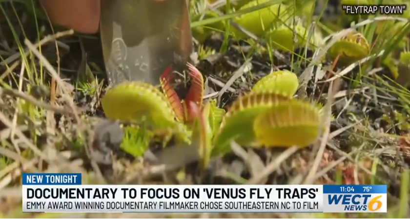 Wilmington-based WECT has covered the behing-the-scenes story of Flytrap Town in a TV news package. Reporter Delaney Tarpley interviewed the film’s Emmy-winning director Robert Ford, as well as one of the subjects of the film, Venus flytrap rescuer Kathy Sykes.