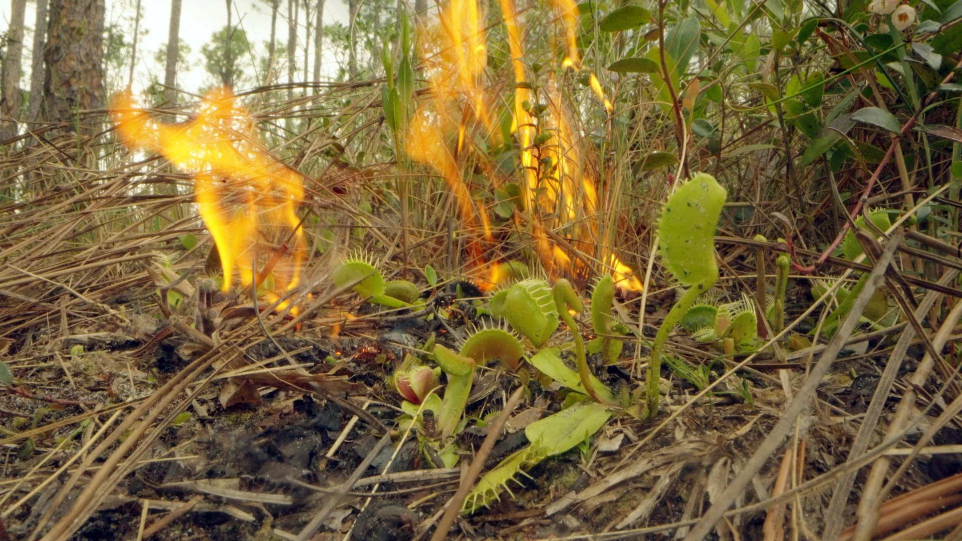 Venus flytraps live in a fire-dependent ecosystem, where controlled burns are essential to prevent shrubs and trees from choking out their habitat. Many people are surprised to learn that wild flytraps need fire to survive. Their energy is stored in a rhizome underground.